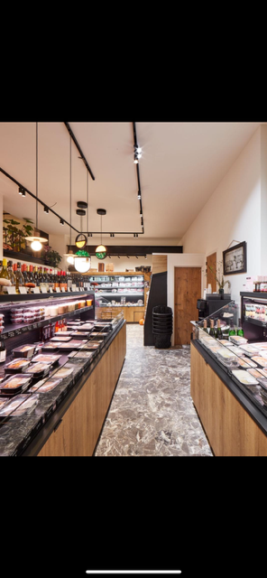 Sale of fresh meat, cold cuts, delicatessen prepared dishes and bread, fruits and vegetables whether or not to prepare yourself.