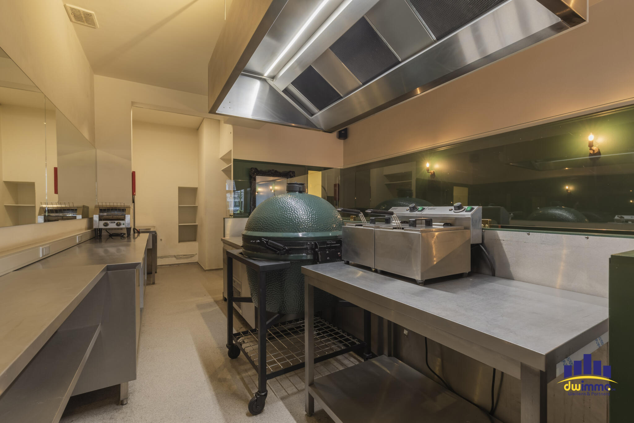 The business has a well-thought-out and efficient layout and is fully equipped with professional kitchen equipment, including multiple refrigerators, industrial extractor hood, professional dishwasher, and all the necessary installations to get started immediately.
