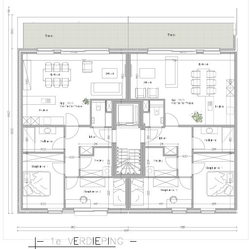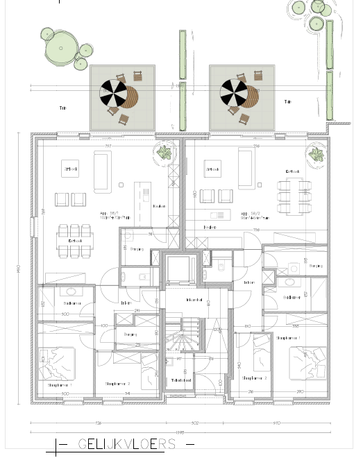 We will soon begin construction on a new investment property in Appels, Dendermonde, with an annual gross rental yield of 3.34% and a net yield of 2.94%. The project includes two ground-floor apartments with gardens, two on the first floor, and a penthouse. Living spaces range from 89 m² to 112 m². Terrace areas range from 19 m² to 72 m².