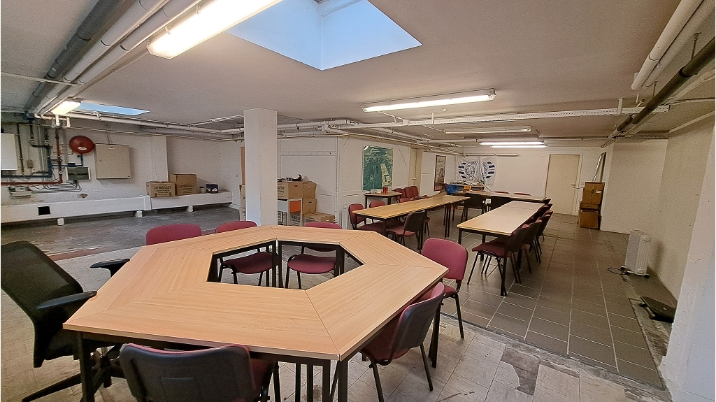 The basement floor ( -1 ) currently includes a very spacious meeting room, refectory with kitchen ( kitchenette ), boiler room and (storage) areas. Most rooms in the basement are also provided with natural daylight. Usable floor area 222 m²