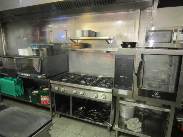 Une cuisine équipée avec lave-vaisselle séparé et garde-manger et tous les appareils nécessaires et fiables, y compris un four à vapeur combiné de marque Electrolux et un four Unox.