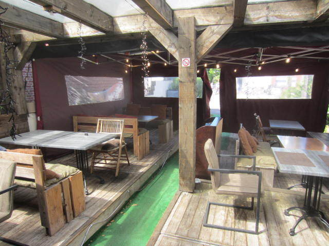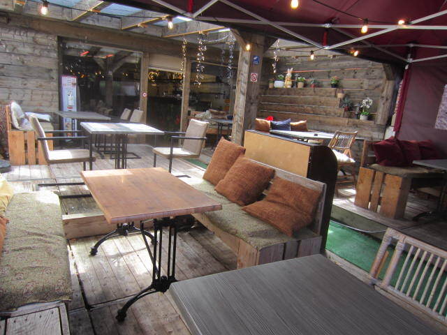 Il dispose d'une salle de consommation d'environ 80 m2 avec comptoir de service et environ 40 places assises à l'intérieur, d'une terrasse chauffée à l'extérieur avec 40 autres places assises et d'une terrasse ouverte à l'avant.