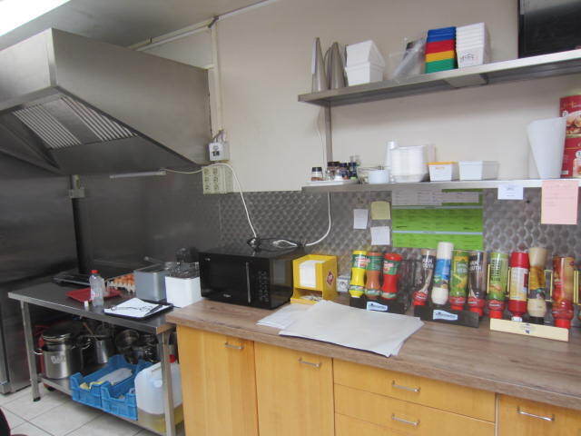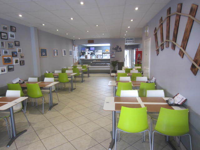 Il dispose d'une salle à manger spacieuse d'environ 110 m2 avec un comptoir réfrigéré et une cinquantaine de places assises.
