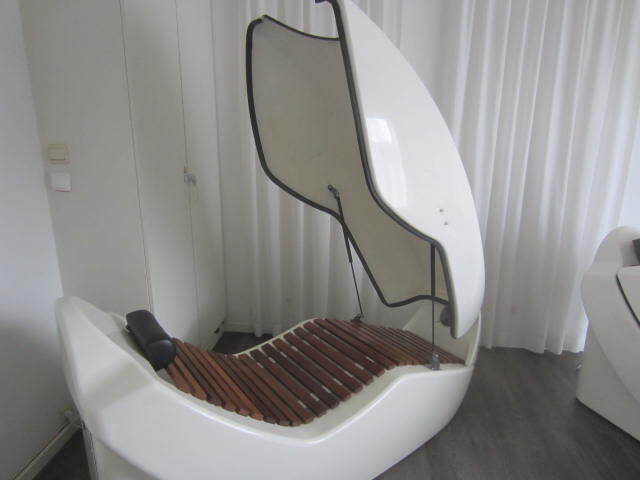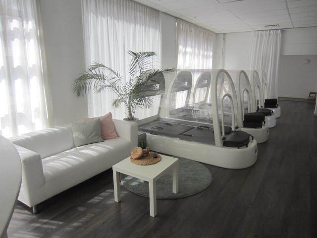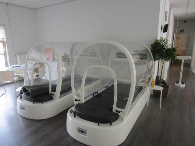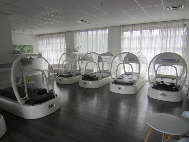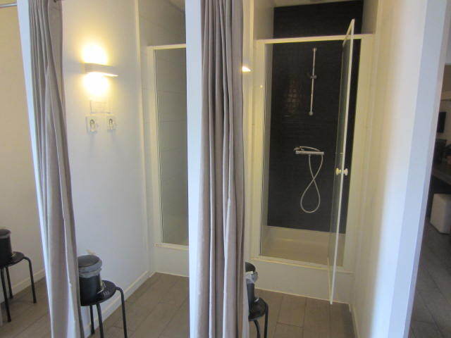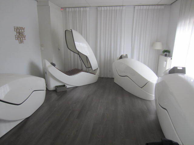 Aménagement : hall d'entrée, plusieurs salles d'exercices dont une avec 6 cabines infrarouges et une autre avec 4 cabines d'ozone, vestiaires, douches et un bureau.