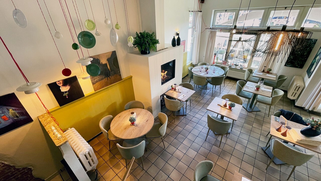 L'intérieur est intemporel et la lumière naturelle, associée à des détails d'ambiance, crée un cadre accueillant qui plaît aux couples, aux familles, aux cyclistes, aux promeneurs et aux hommes d'affaires. La salle peut accueillir 55 personnes, et la terrasse spacieuse avec vue sur le canal et les bateaux peut accueillir environ 60 personnes.
