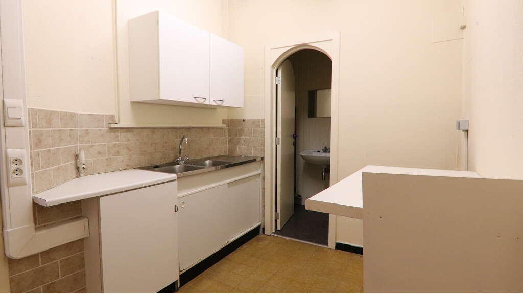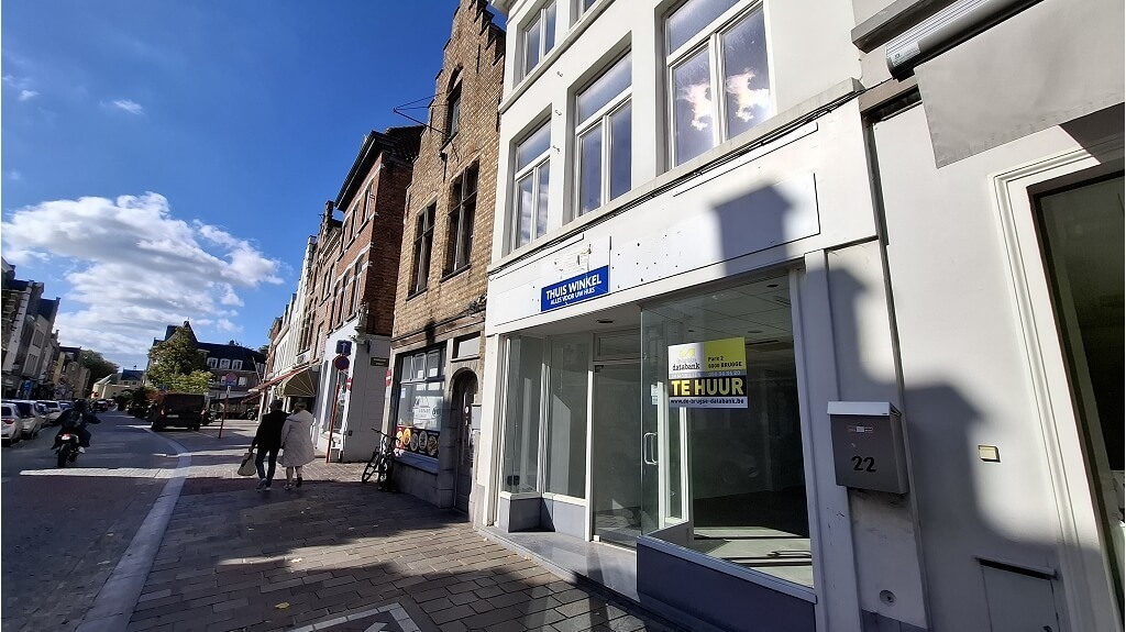 Cet espace de bureau ou de vente bénéficie d'un excellent emplacement et d'une bonne visibilité dans la Smedenstraat, une rue commerçante très fréquentée par les habitants.