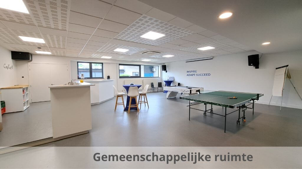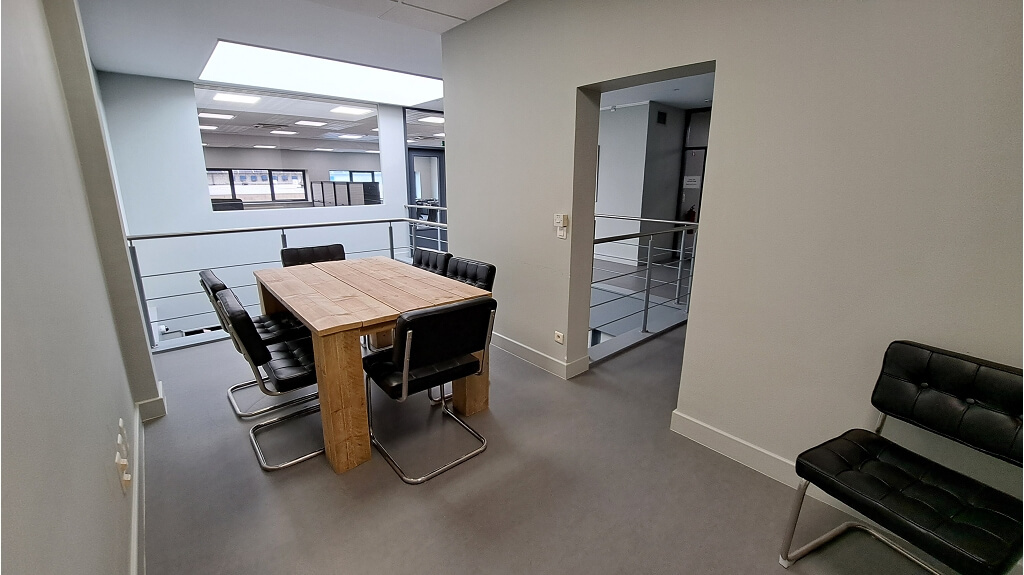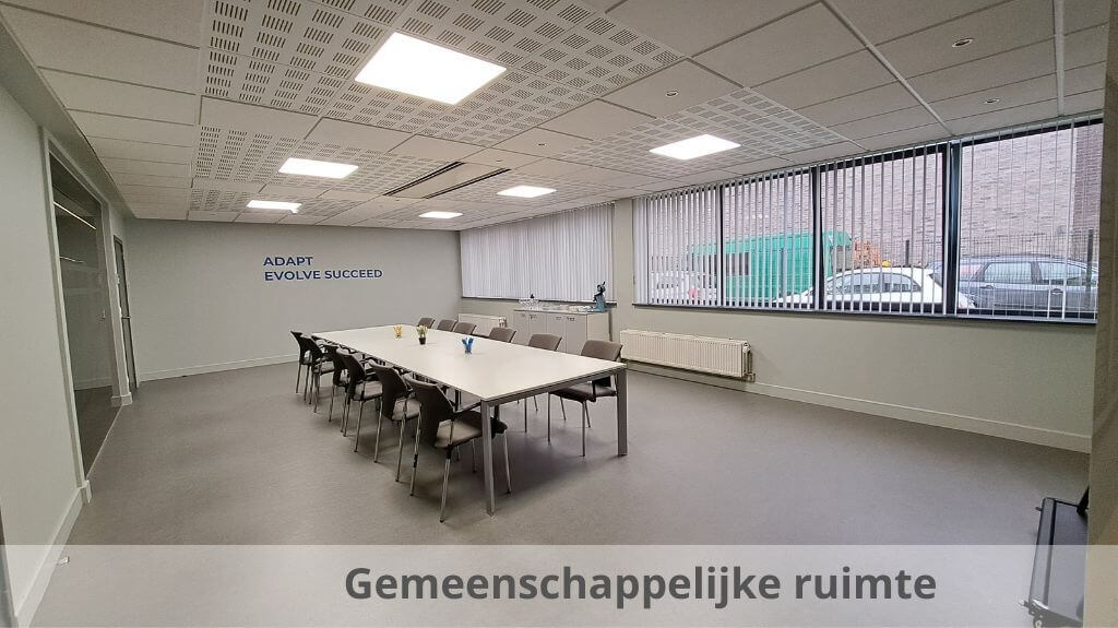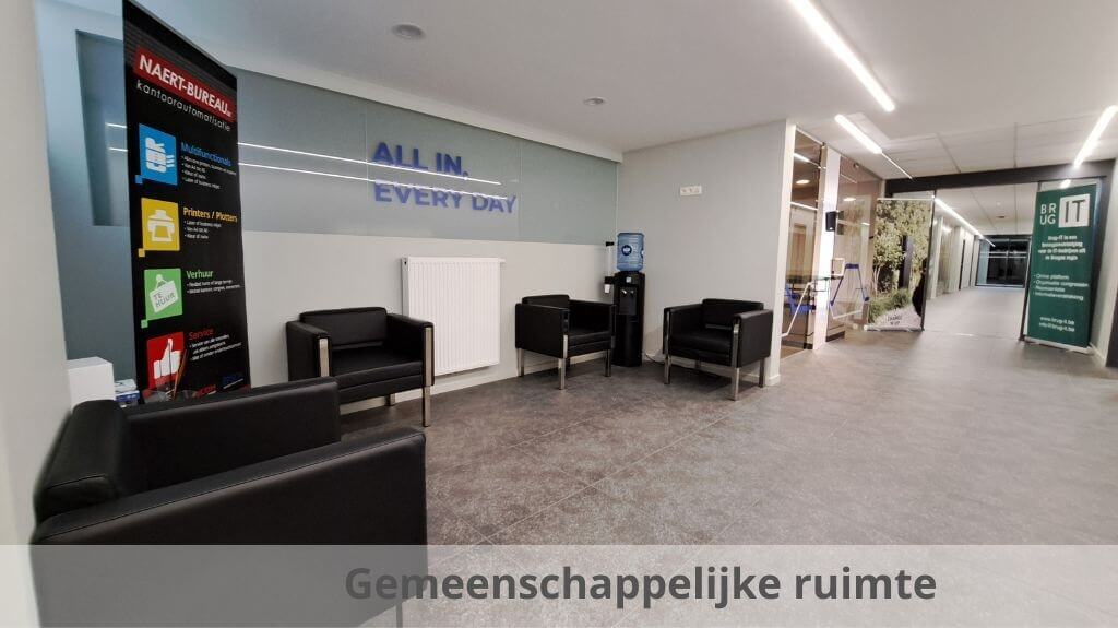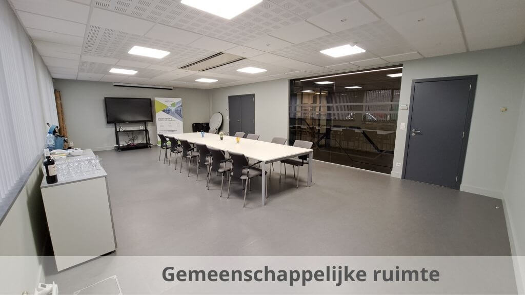Espace de bureau spacieux et prêt à l'emploi ( env. 85 m² ) avec 3 places de parking à un emplacement intéressant dans un parc d'affaires à Bruges (Bruges Technology Center - Z3 Waggelwater ) + Facilement accessible + Mobilier inclus !