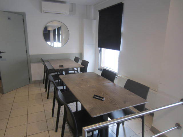 Zij beschikt over een ruime verbruikszaal van ongeveer 70 m2 groot met een 26 tot 32 zitplaatsen .