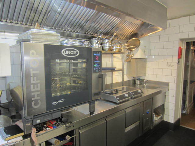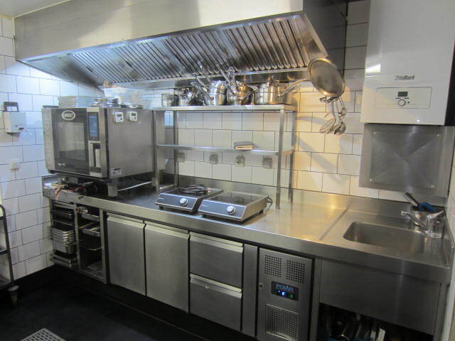 Verder een geinstalleerde keuken met al het nodige materiaal waaronder een combisteamer merk Unox Cheftop .