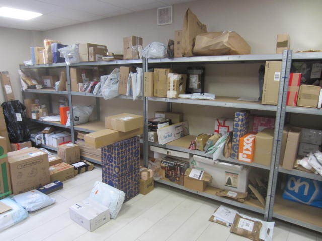 Verder nog een ingerichte keuken , bureel , bergplaats , toilet en een ruime magazijn / pakket - ruimte voor de diverse pakjes die worden geleverd .