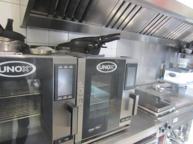 Een geinstalleerde keuken met al het nodige en degelijk materiaal waaronder 2 combisteamers merk Unox Cheftop .