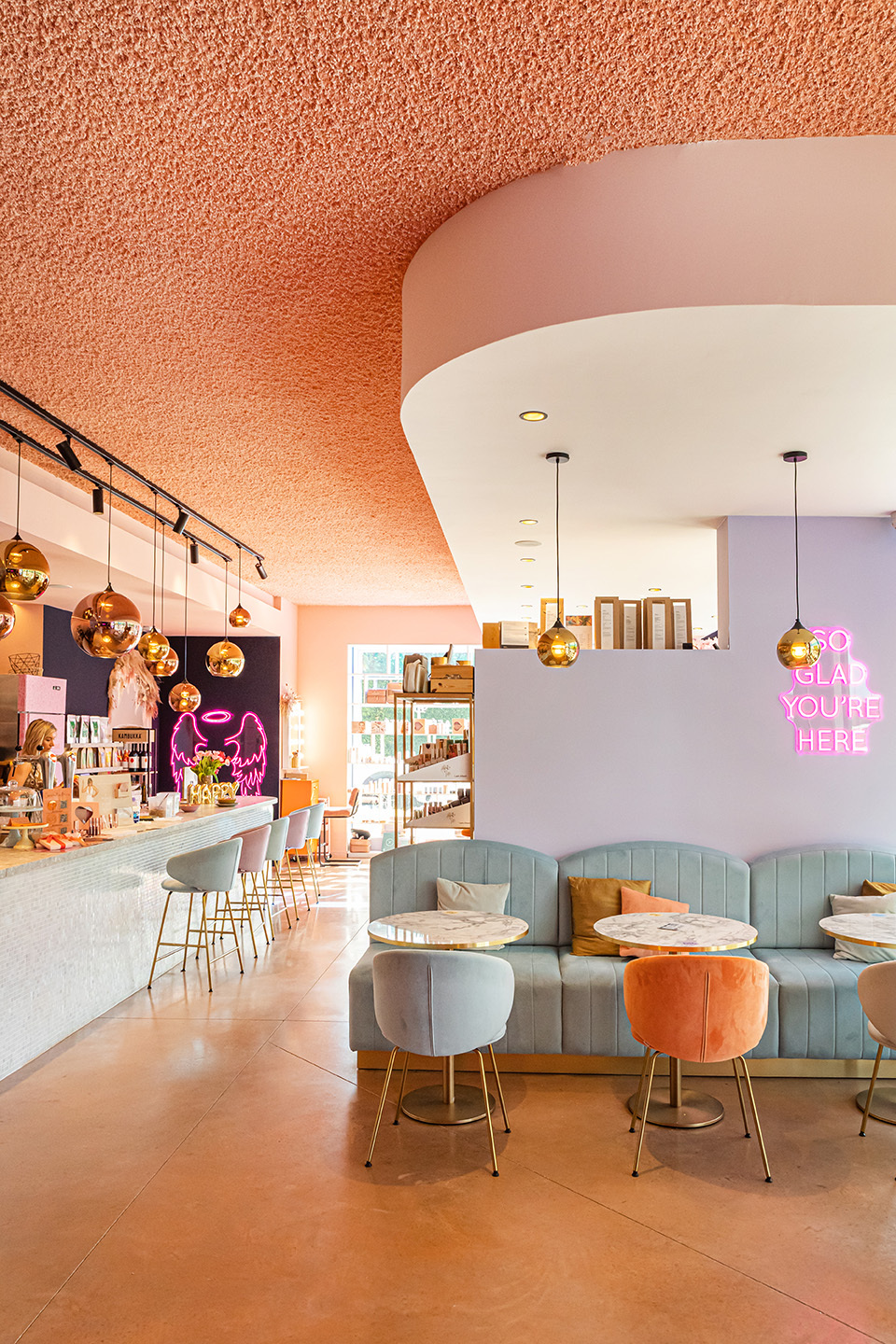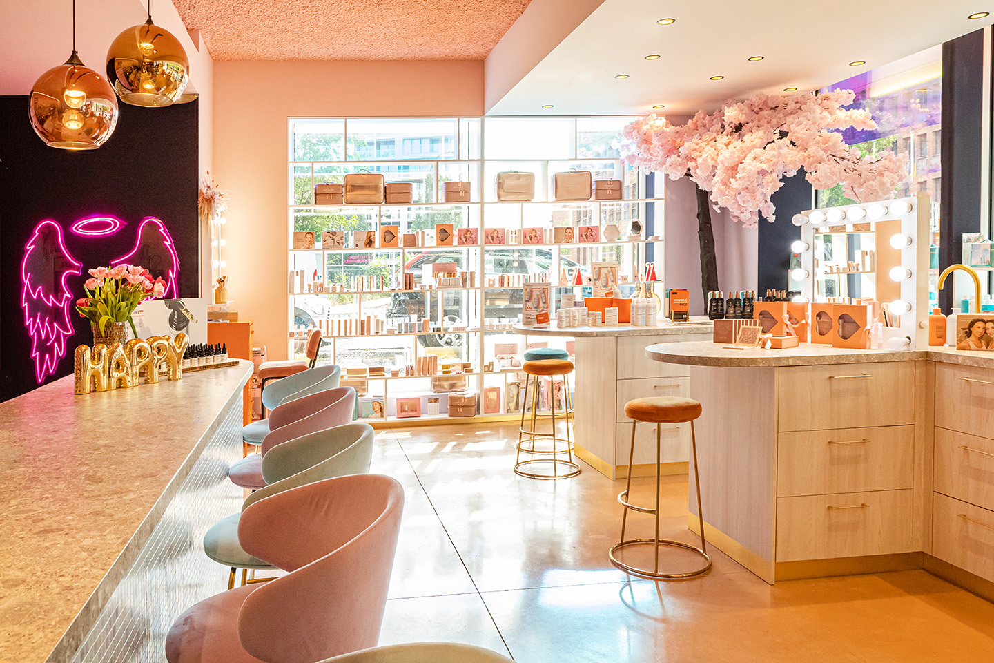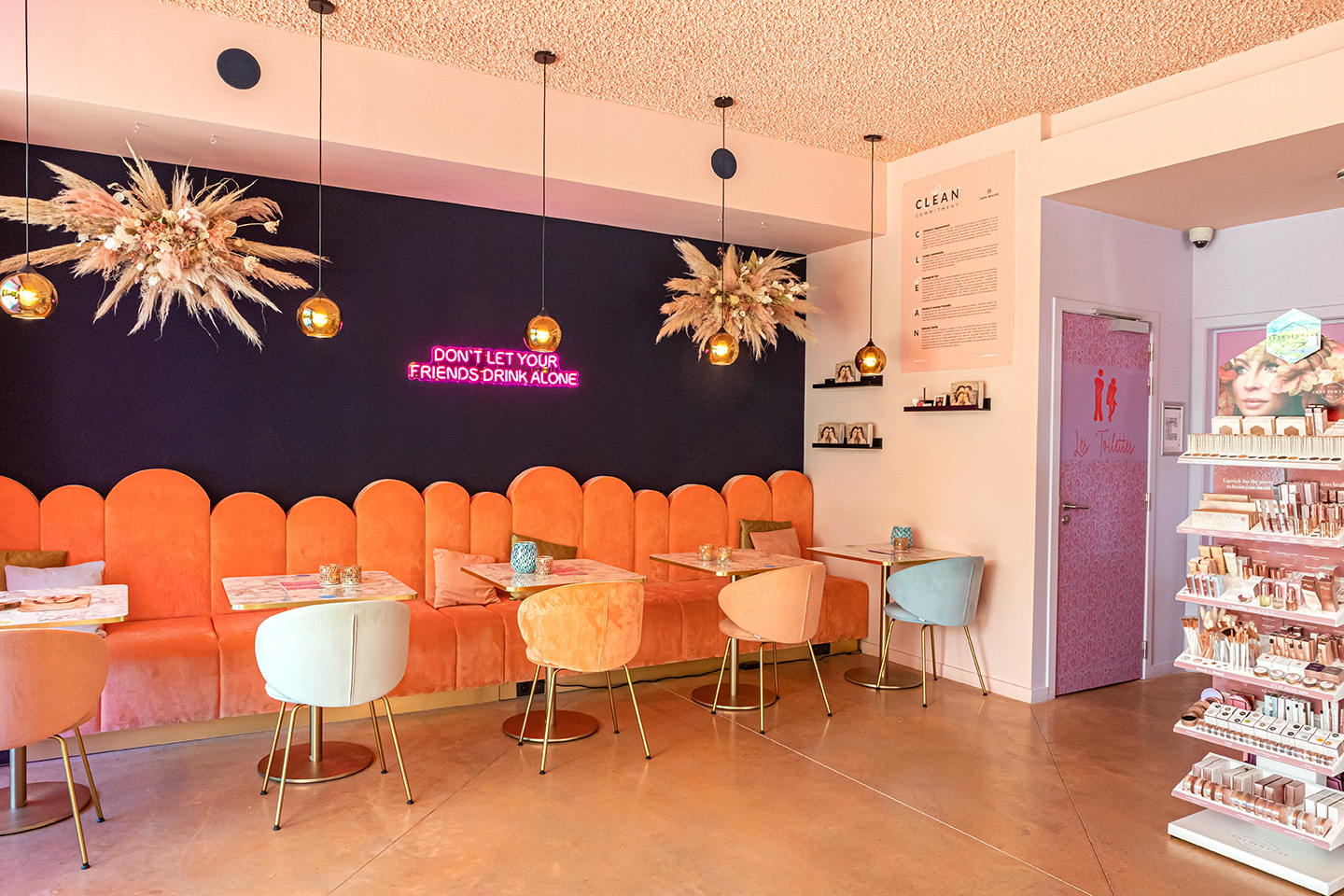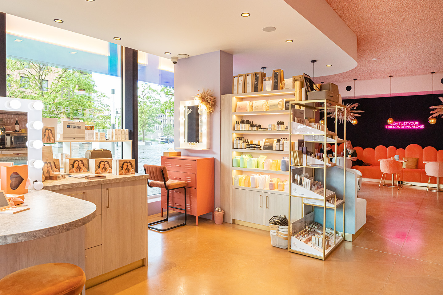 Bij Café Beauté kon je zo even binnenlopen om verzorgings- of cosmeticaproducten te kopen, gewoon iets te komen drinken of eten, of één van de vele beautybehandelingen te laten doen.