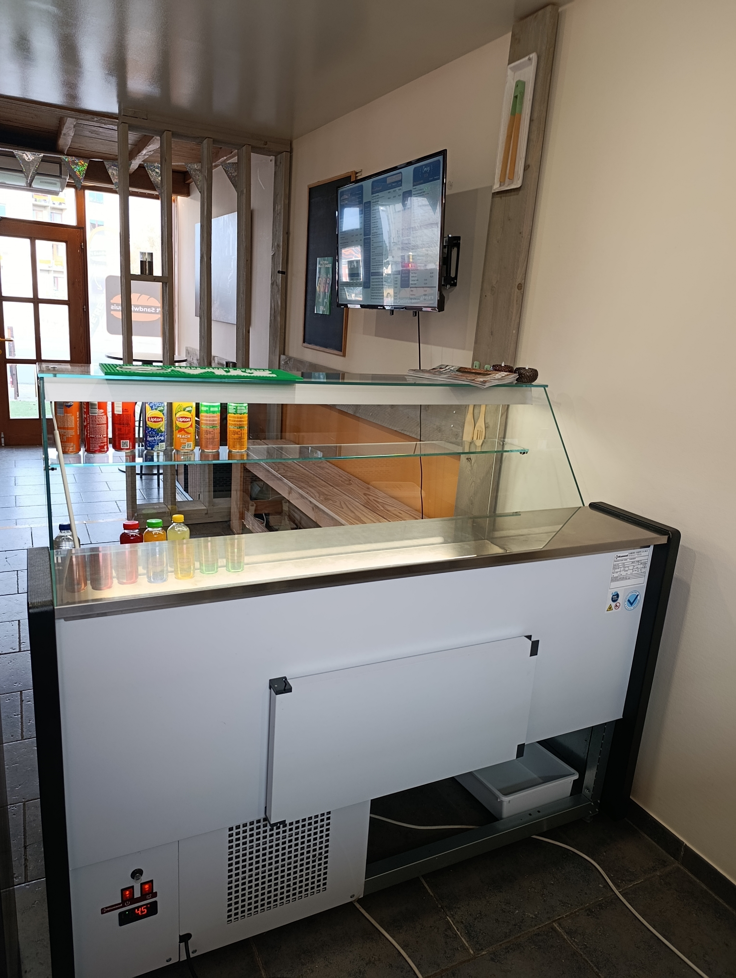 - Tv scherm voor display prijslijst, suggesties en promo's met wandmontage