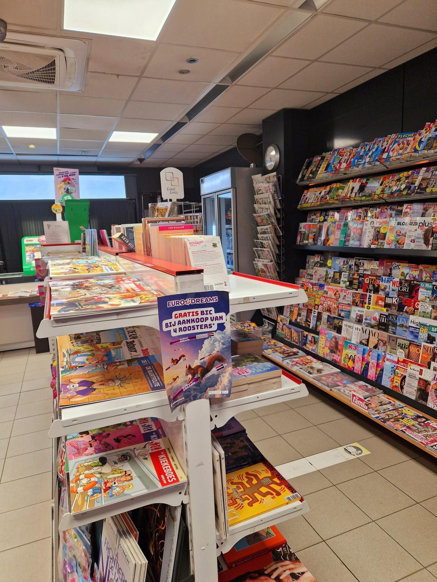 Zij beschikt over een zeer grote verkoopoppervlakte van ongeveer 85 m2 met een ruim assortiment tijdschriften , dagbladen , wenskaarten , lotto , postzegels en lijnkaarten, tabakswaren en vaping-producten,snoep en frisdranken.