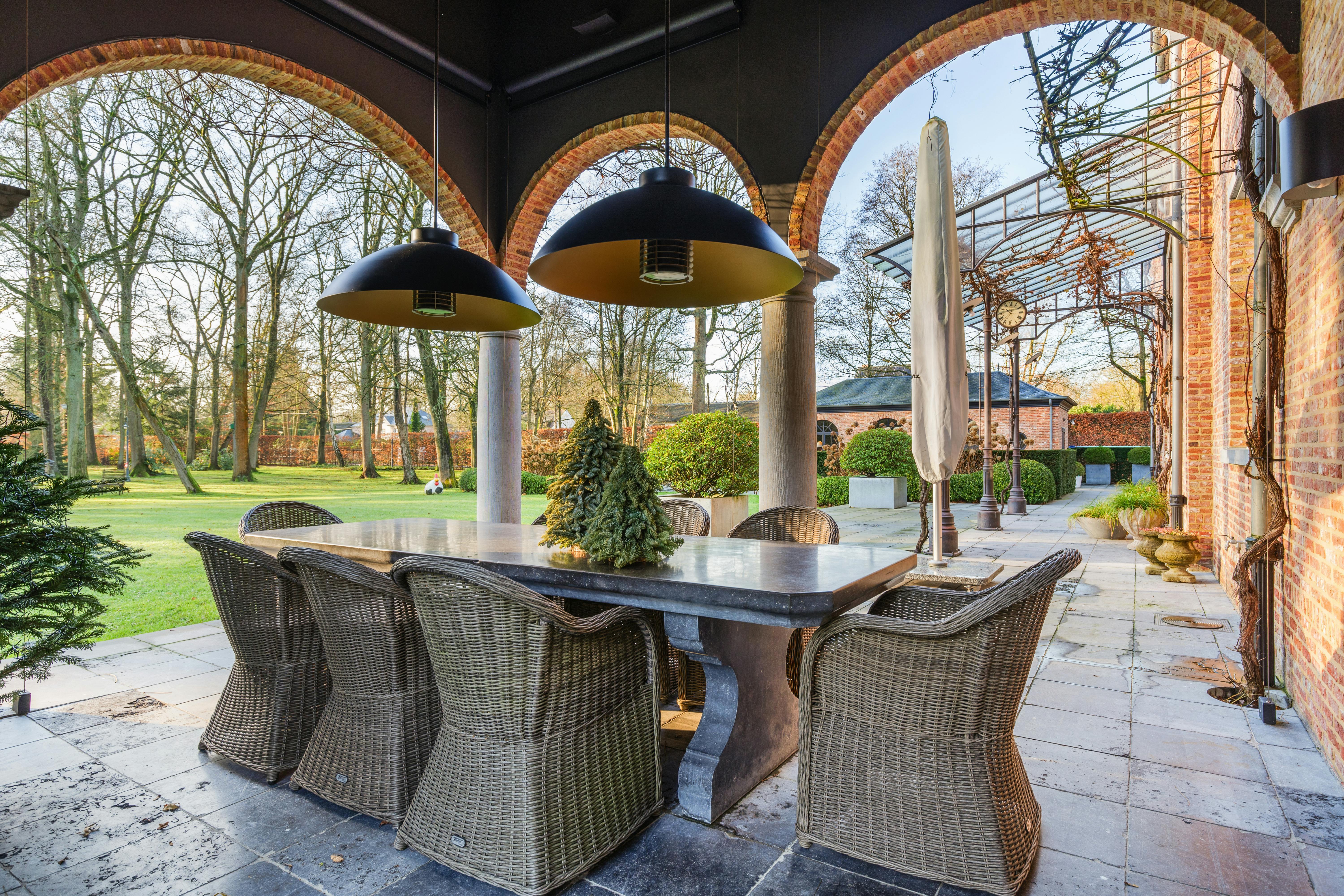 De tuin heeft prachtig overdekte & open aangelegde terrasdelen, een verwarmd zwembad met aanhorige orangerie voorzien van sauna/solarium.