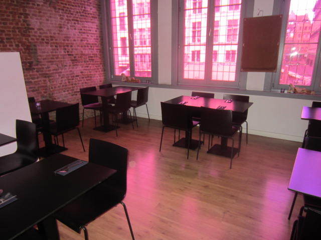 Zij beschikt over een verbruikszaal van ongeveer 75 m2 met een 40 tal zitplaatsen op het gelijkvloers en een zaaltje op de eerste verdieping nogmaals goed voor 30 plaatsen .