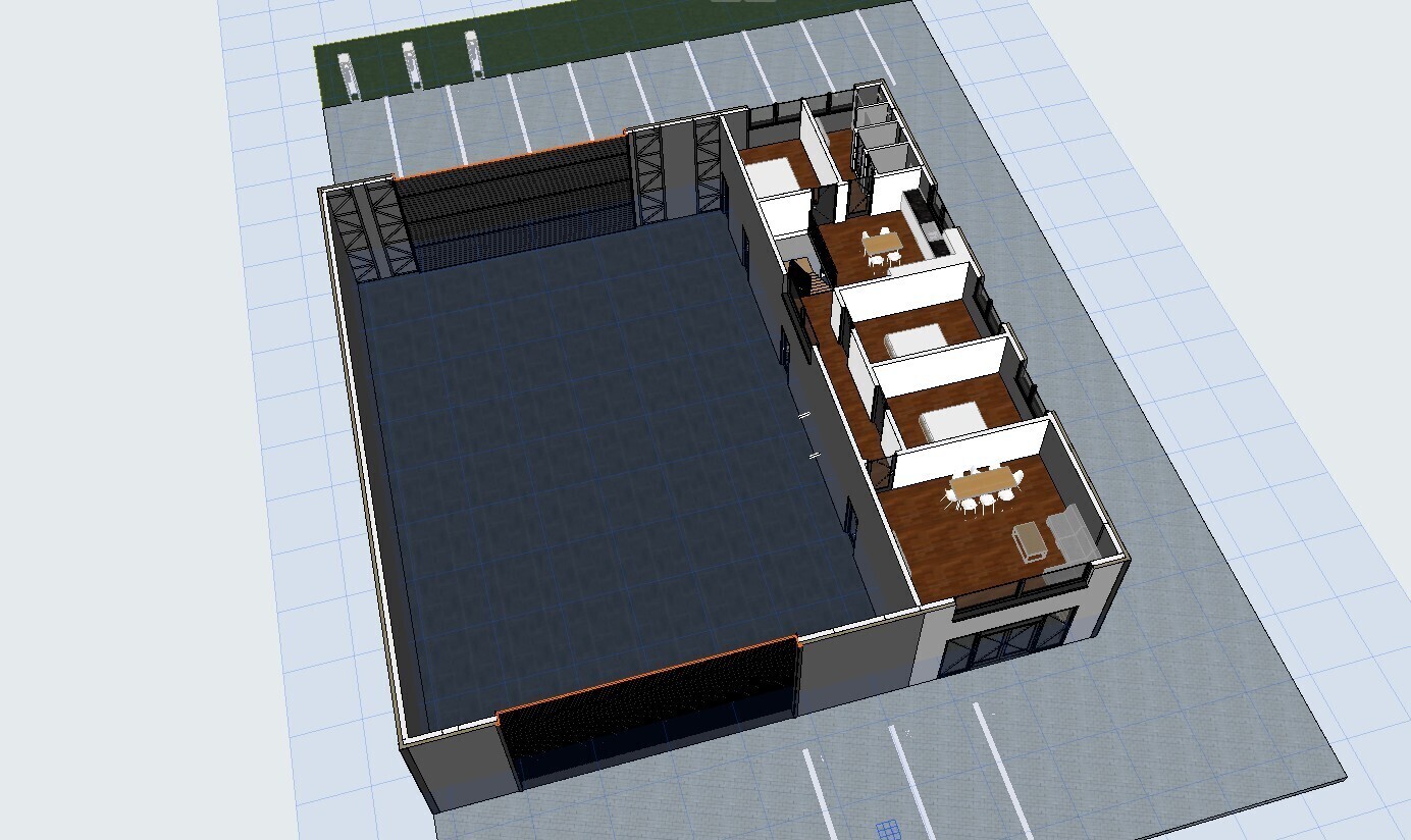 Het magazijnproject met 120 m² kantoor- en showroomruimte, 120 m² conciërgewoning, 20 parkeerplaatsen, 40 m² opslagruimte op 6H en de metaalproductie zou in het eerste jaar een omzet van 1.500.000 tot 2.000.000 kunnen genereren.