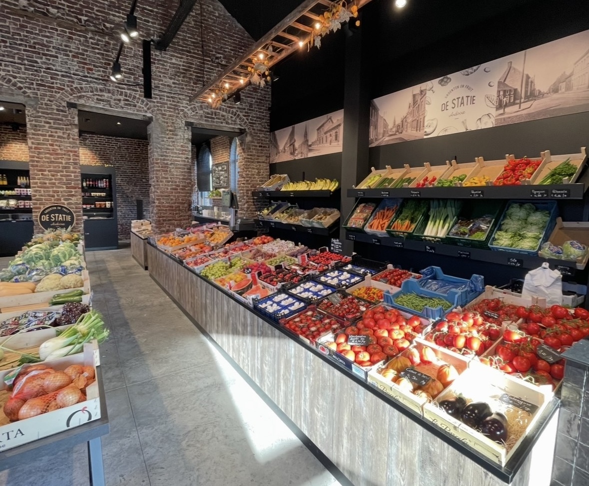 Deze werd ingericht met de grootste zorg door een gekend winkelinrichtingsbedrijf en beschikt hierdoor over alle troeven die je nodig hebt voor het uitbaten van een groenten en fruit winkel.