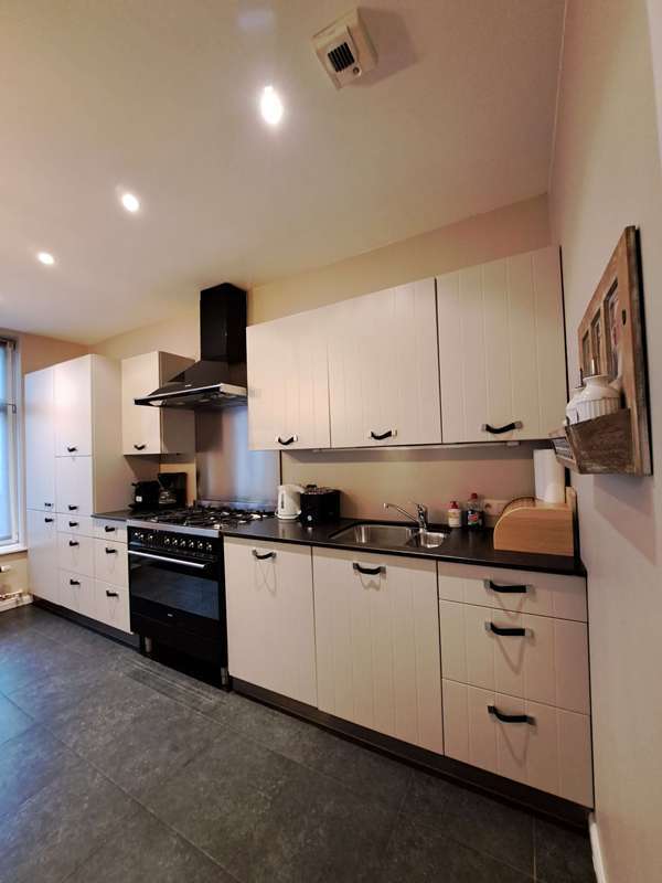 En er is ook nog een ruime tweede slaapkamer en badkamer met douche op de derde verdieping.