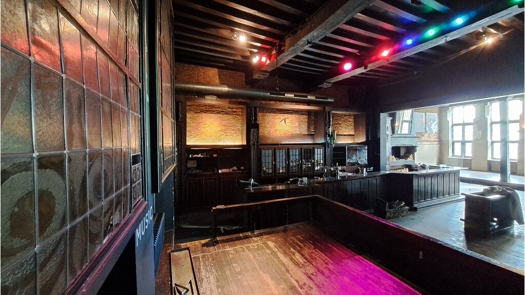 - Gelagzaal 1 omvat een bar, podium/stage, zeer ruime keuken, koude keuken, stockageruimte en sanitair. Energielabel E