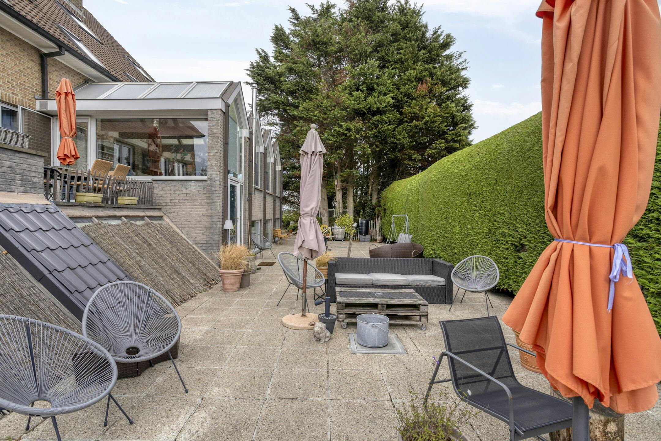 Dakverdieping : trappenzaal, nachthall, 1ste familiekamer met een slaapkamer met zitruimte, een afzonderlijke kinderkamer, 2 badkamers en een eetruimte met bovengelegen ontspanningsruimte opgedeeld in 2 ruimtes, een badkamer en slaapmogelijkheid; 2de familiekamer met een slaapkamer met zitruimte, badkamer en terras