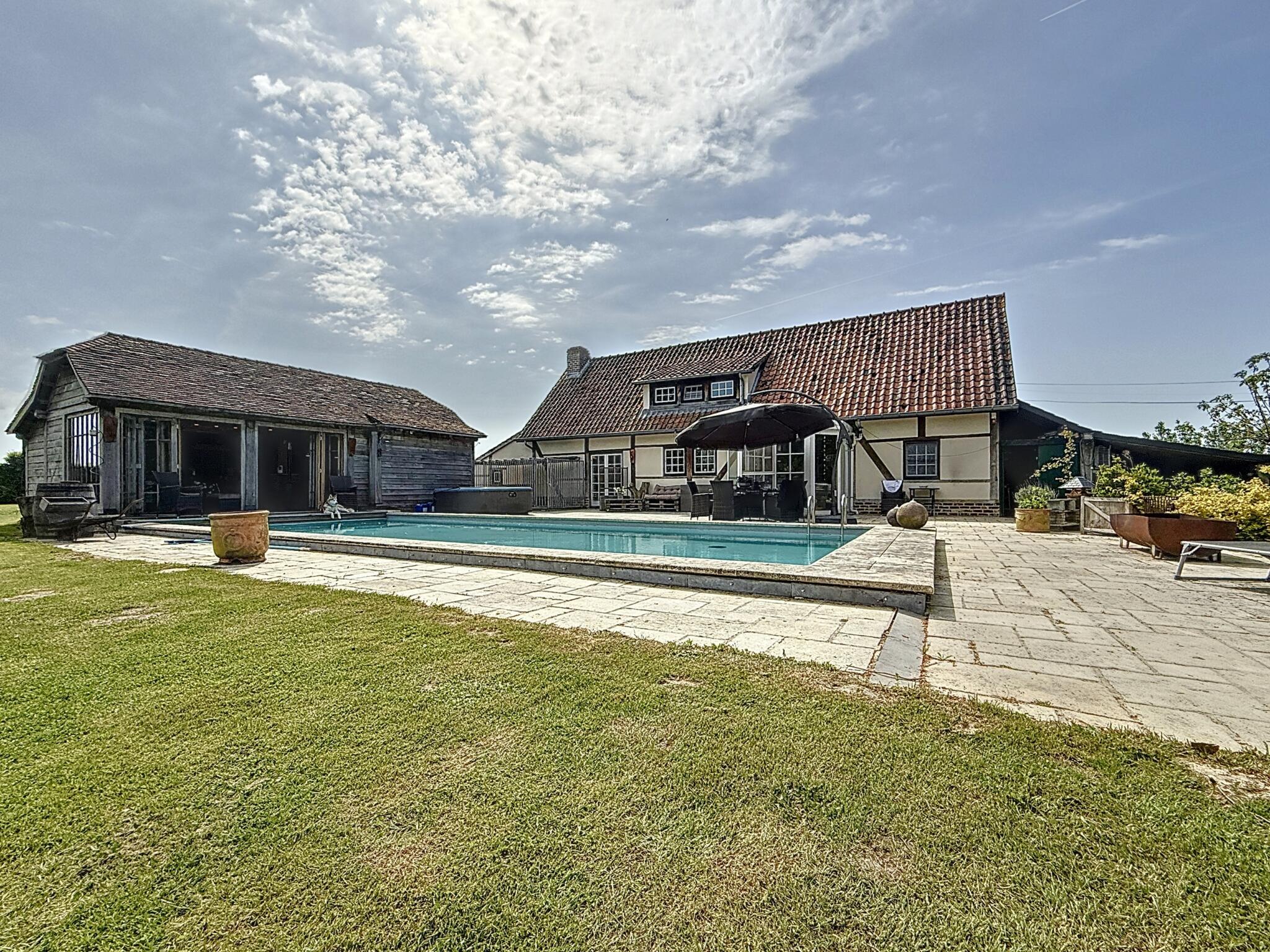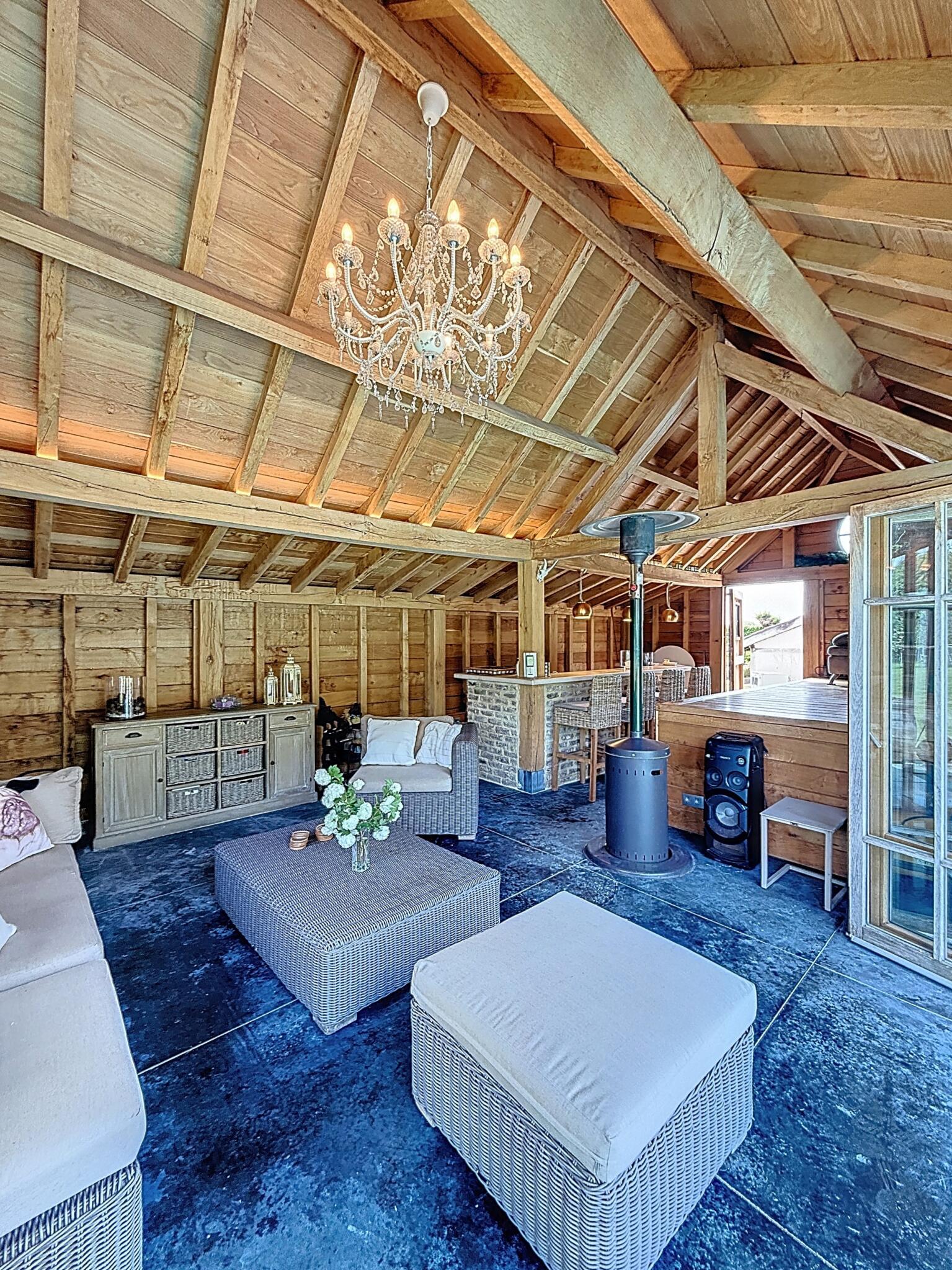 Het buitenleven wordt hier naar een hoger niveau getild: het royale terras met een ingebouwd zwembad en een stijlvol poolhouse met bar vormt het absolute pronkstuk van de woning – perfect voor zomerse ontspanning en sfeervolle avonden met vrienden en familie.