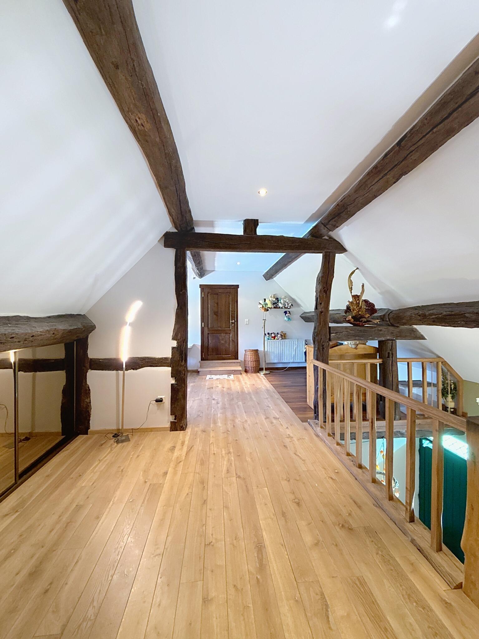 Op de verdieping zorgen een open vide, een luxueuze badkamer met ligbad en douche, en een extra slaapkamer met airco voor comfort en privacy. Dankzij zonnepanelen en een warmtepomp combineert deze woning haar authentieke charme met moderne, energiezuinige technologie. Het EPC bedraagt 322 kWh/m² jaar (label D).