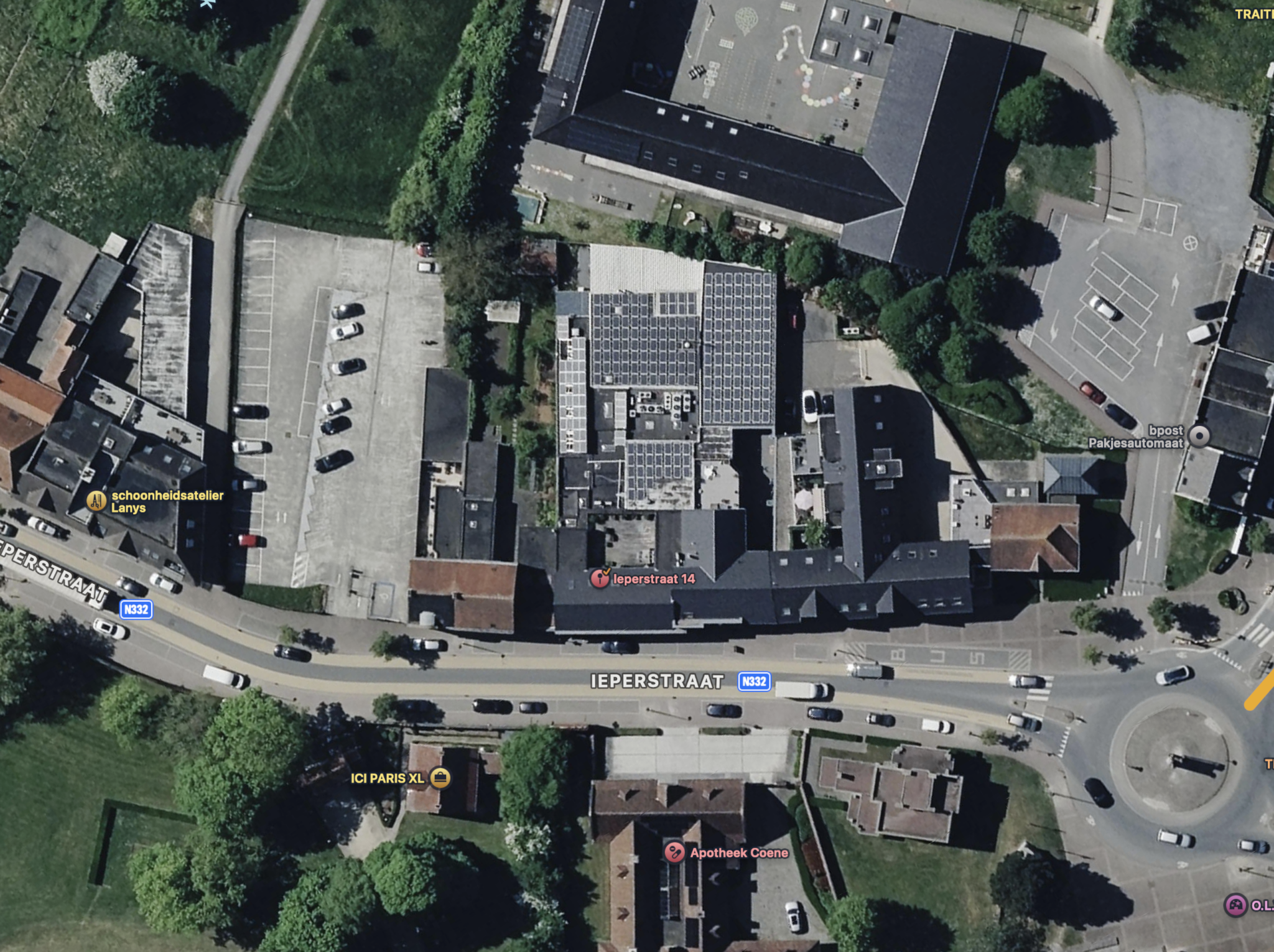 Het pand is gelegen op een drukke verbindingsweg tussen Ieper & Roeselare op 2km van de autosnelweg & 20km van Kortrijk.