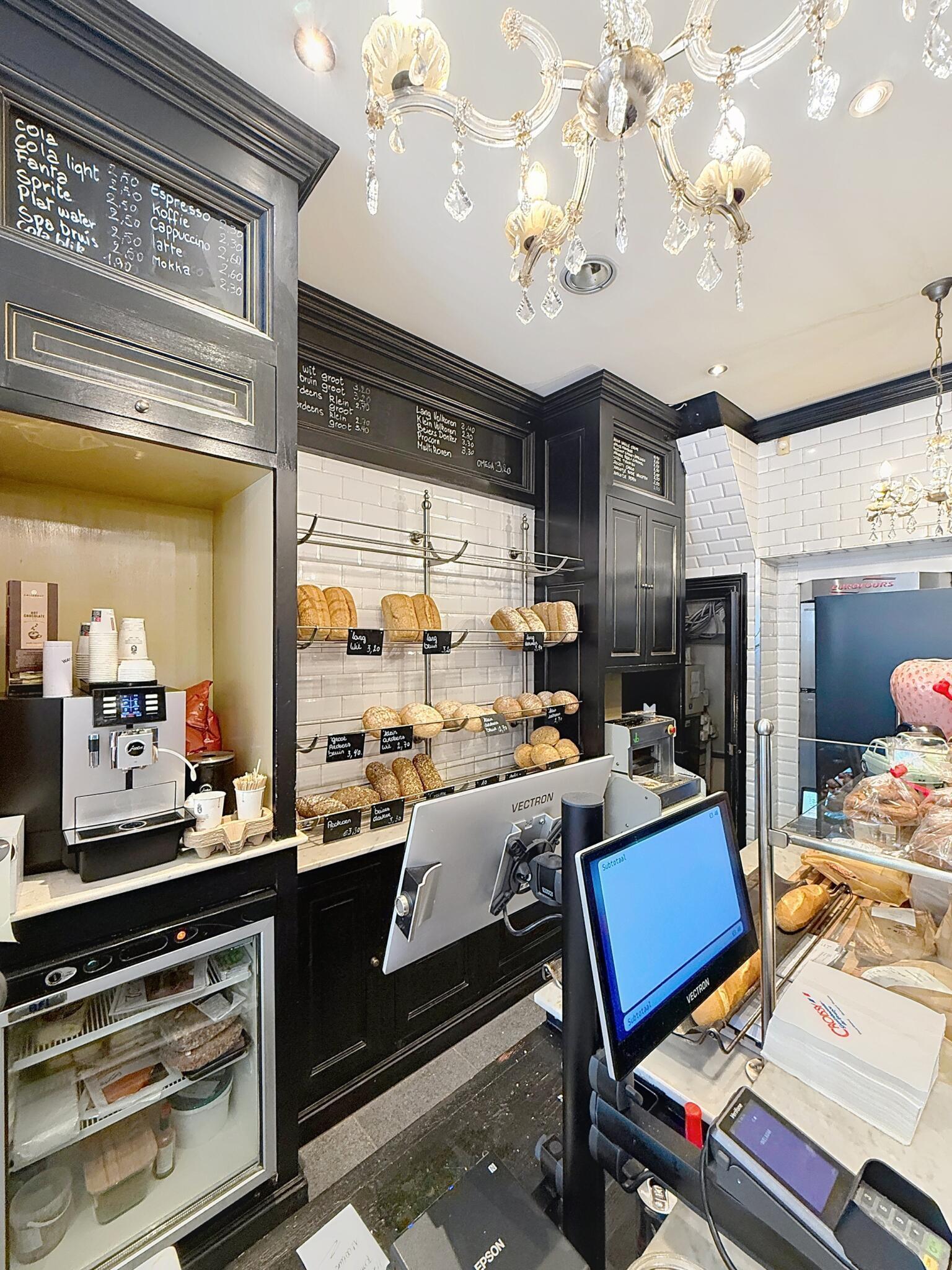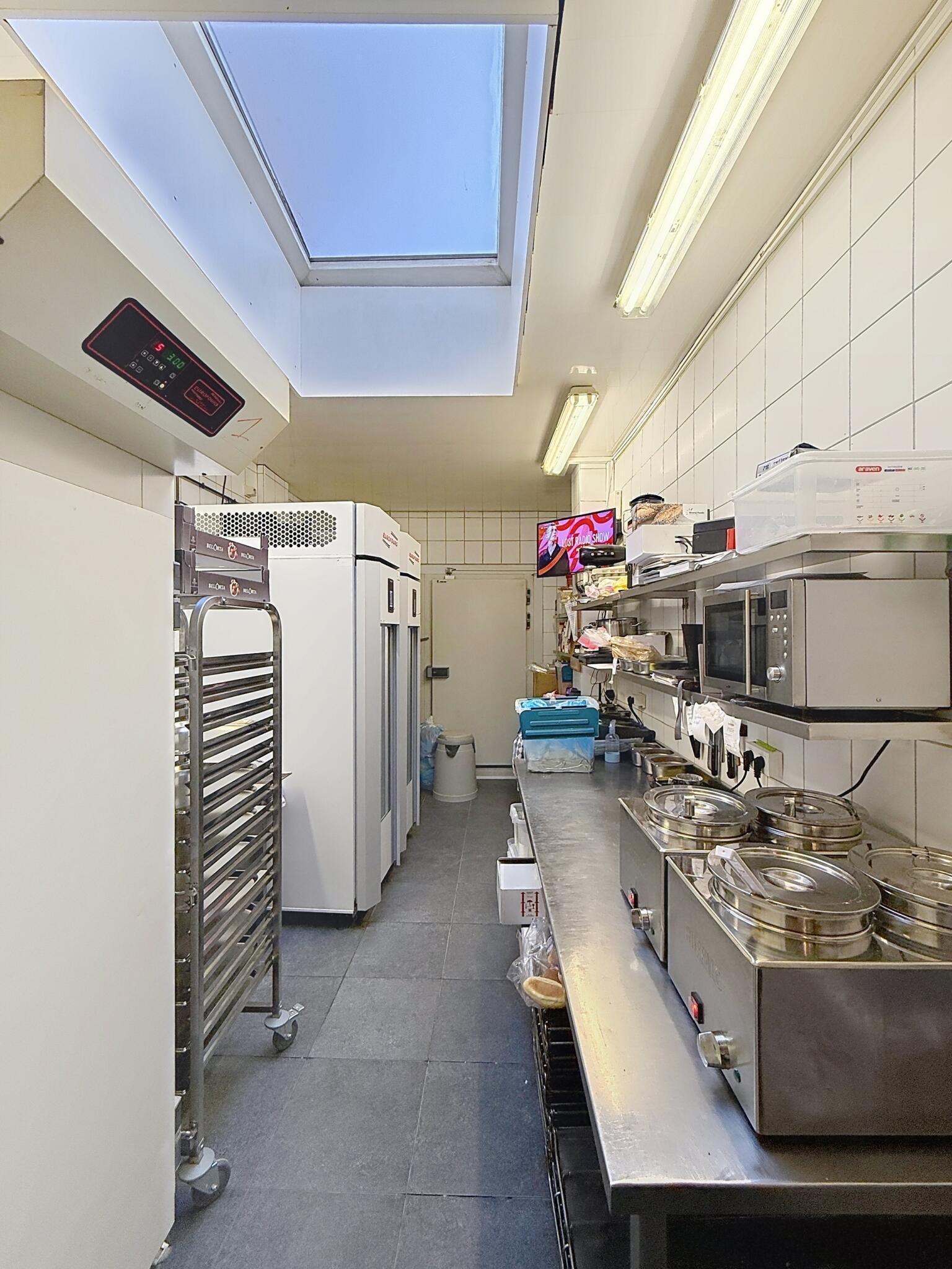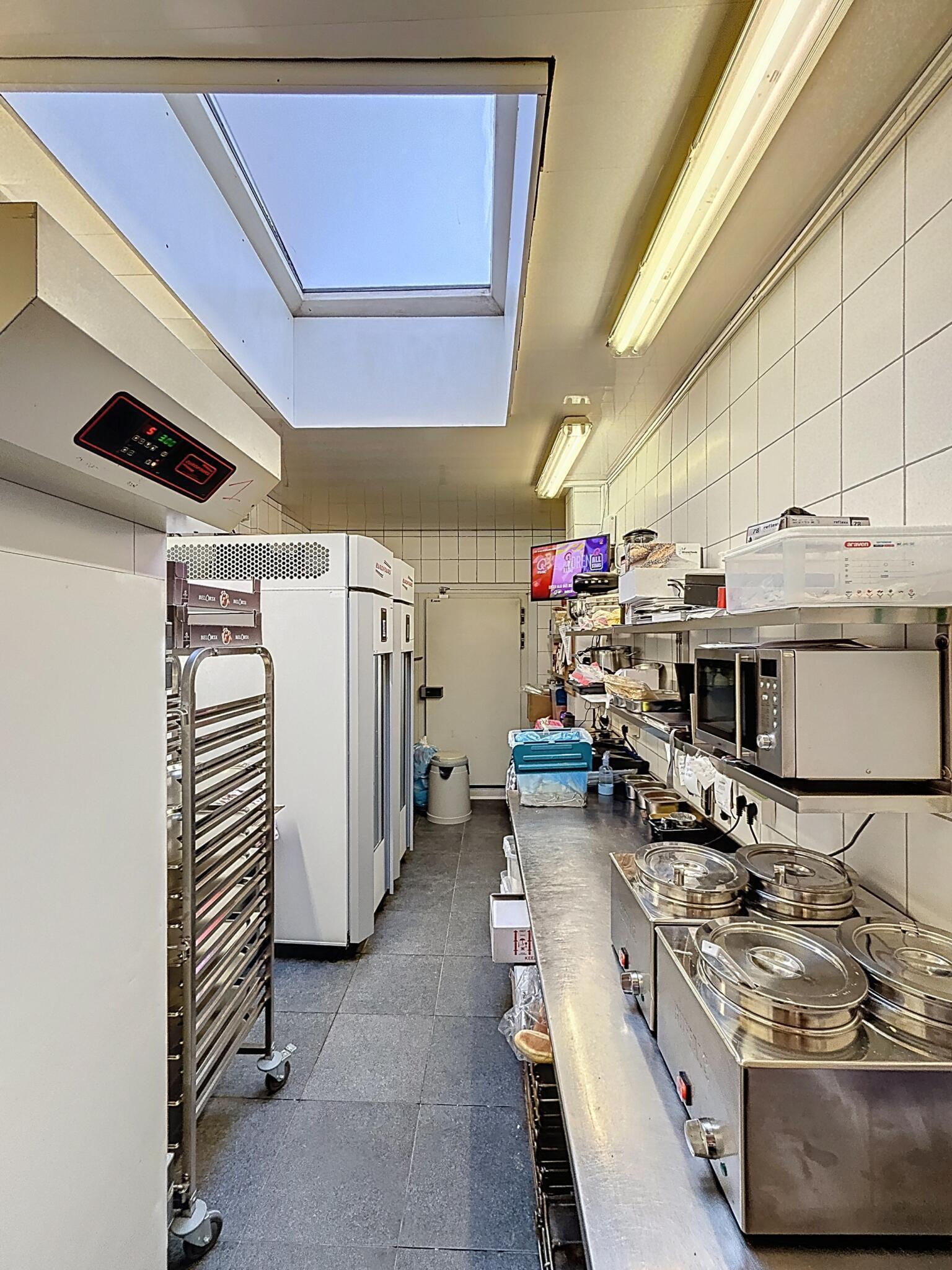 Het gelijkvloers biedt 62 m² handelsruimte, momenteel ingericht als bakkerij, met praktische werkruimte en koelcel achteraan. Op de verdiepingen vindt u een lichtrijke leefruimte, keuken met terras, badkamer en 2 à 3 slaapkamers, plus een ruime zolder voor extra mogelijkheden.