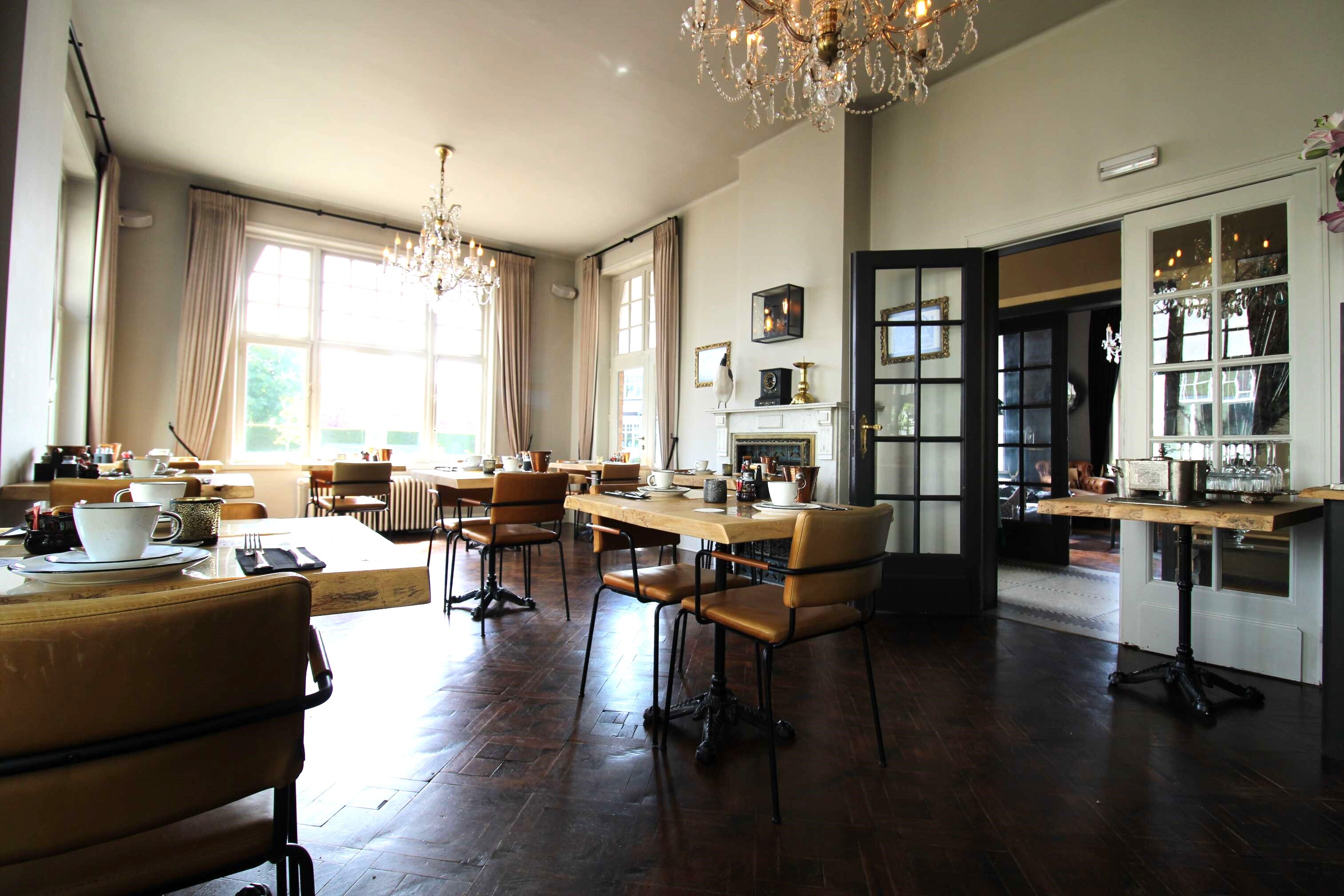 Hoogwaardig materialen (massief eiken meubilair), Chesterfield zetels, 2 ontbijtruimtes, Honesty bar. Terras met ~ 30 zitplaatsen.