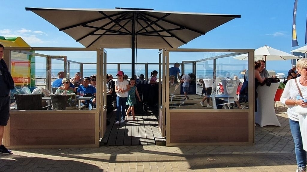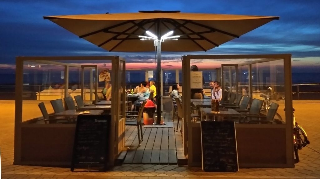 Buiten zijn er 2 terrassen: een terras op de zeedijk, aanpalend aan de zaak met plaats voor ca. 14 personen en een terras aan de ingang van de Leopoldlaan met een capaciteit van 4 personen. Vg,Wg,Gmo,Gvkr,Gvv