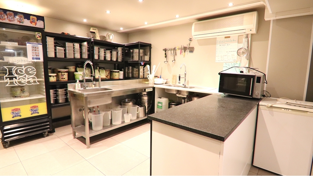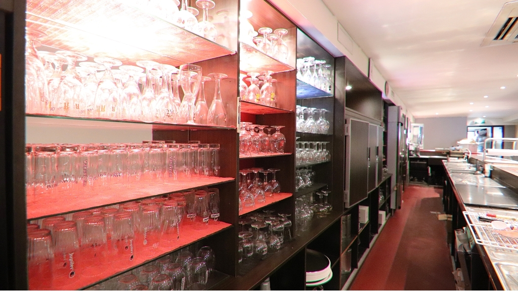 Omvat een gelagzaal voor ca. 20 personen met open toog en aansluitende cocktailbar, in de kelderverdieping bevinden zich de dames- en herentoiletten, keuken met vriescel, 3 bergingen waarvan 1 met koelcel en een inloopdouche.