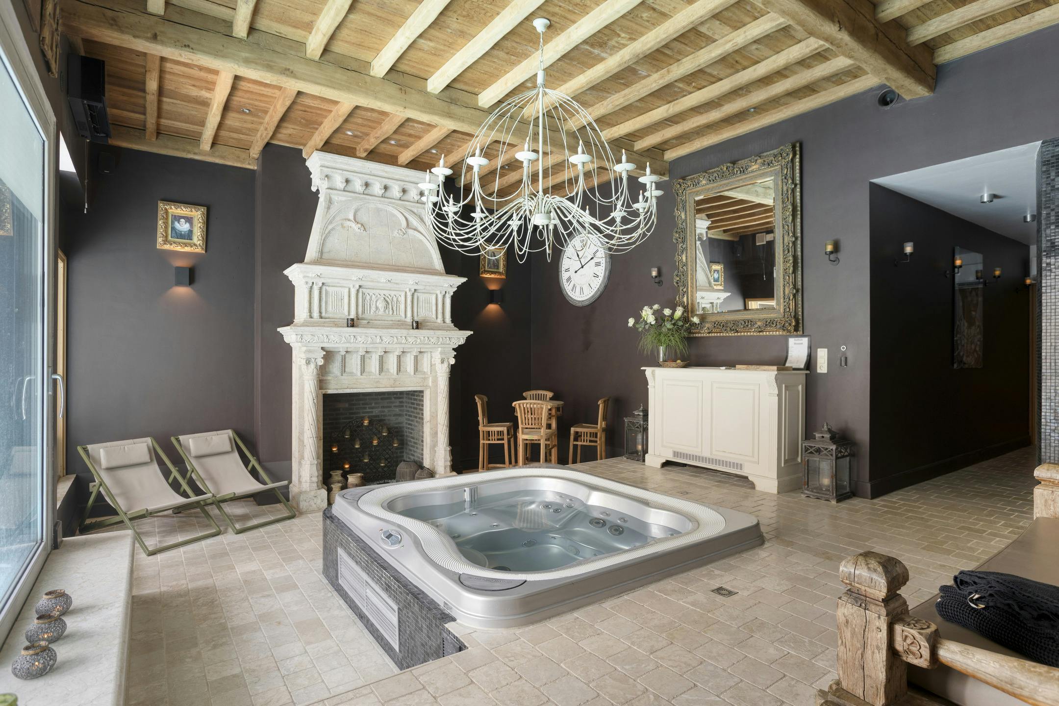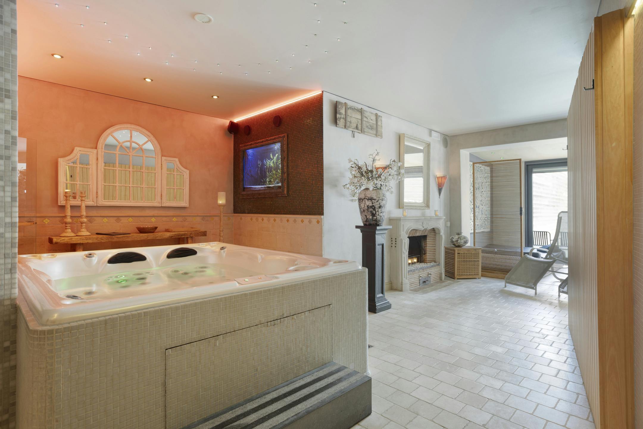 Op het gelijkvloers bevinden zich twee volledig uitgeruste en succesvol geëxploiteerde badhuizen, samen goed voor 202m². Deze wellnessruimtes zijn uitgerust met tegenstroomzwembaden, infraroodcabines, sauna's en jacuzzi's, en bieden een complete ontspanningservaring. De klanten worden ontvangen in een gezellige ontvangstruimte van 20 m². Alle aanwezige toestellen zijn inbegrepen in de prijs.
